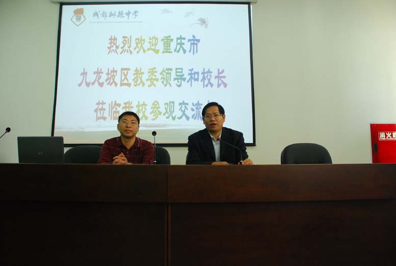 2009年4月13日上午,重庆市九龙坡区教委领导和校长莅临我校参观交流,我校毛道生校长、办公室苟凌主任接待了来访的客人。毛校长带领来访客人参观了校园,去了体育馆、学生宿舍、食堂、书店、学生报告厅等参观,最后在行政楼二楼会议室,来访人员观看了我校八十校庆短片,毛校长回答了来访领导的问题,他们对我们学校的教学设施、教学管理、学校思想等都给予了很高的评价,对我校所取得的成绩高度赞扬。