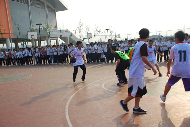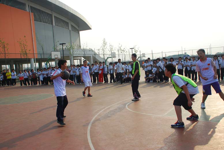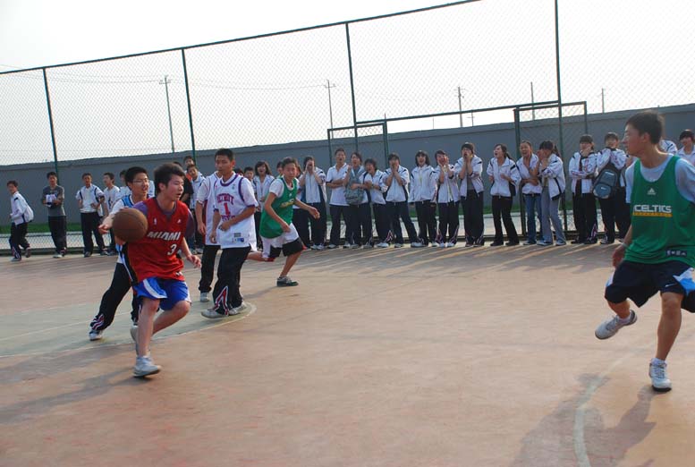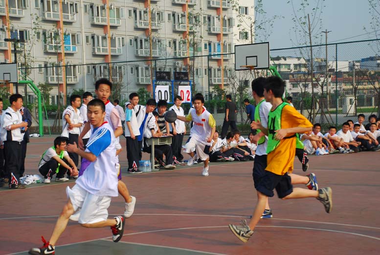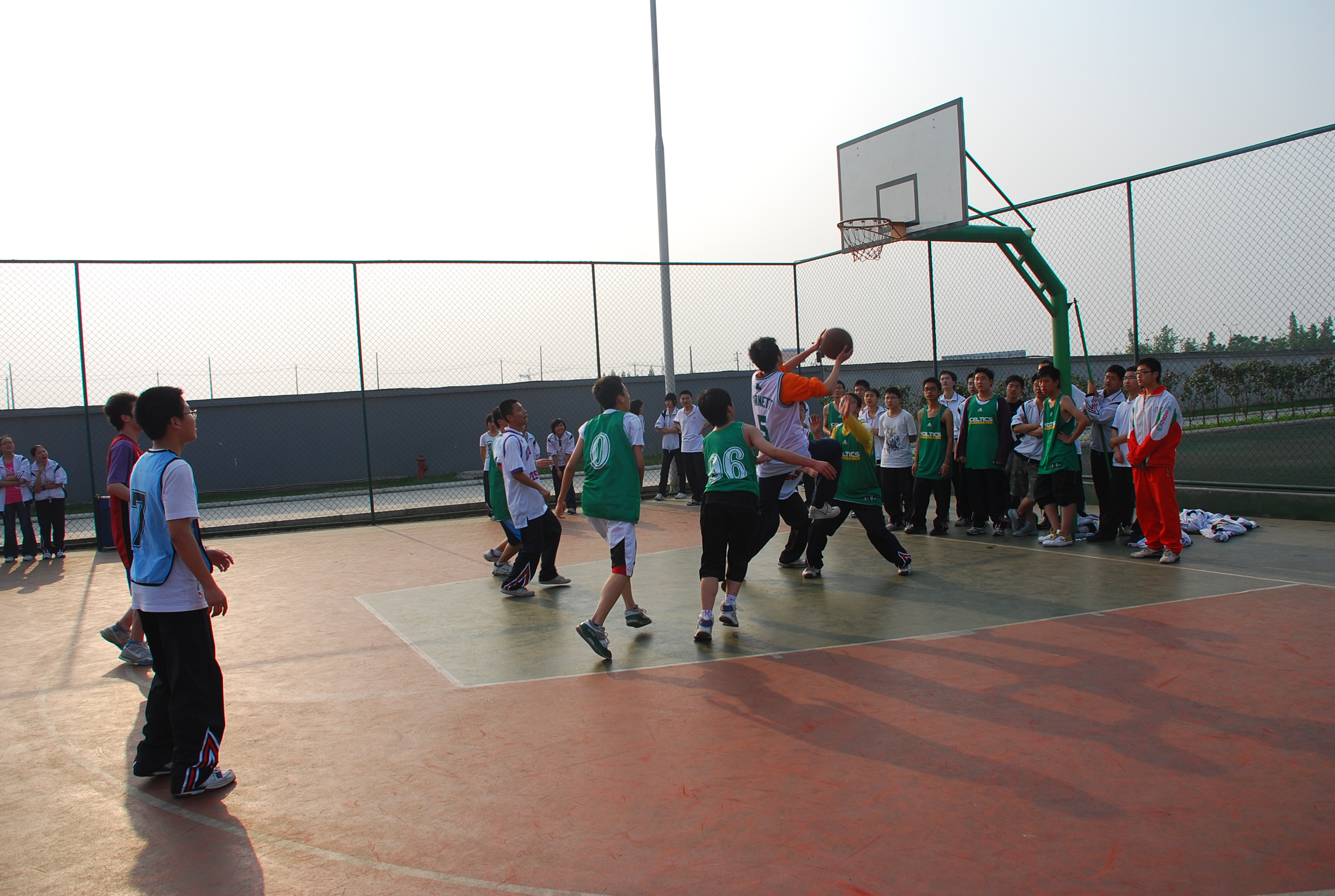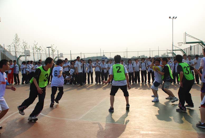 2009年4月16日下午,我校篮球赛在体育场举行,同时进行两场篮球赛,