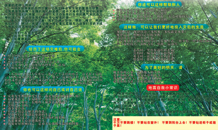 大部分人经过大灾难后,都会产生这样的感受,这是很正常的,不要隐藏你的感爱,让亲人、朋友一起和你分担。如果压抑这些情绪或想法,反而会造成心理紧张与身体不适,使我们复原的时间拉长。如果你有任何的需要,请向你身边的人说出你的需要。