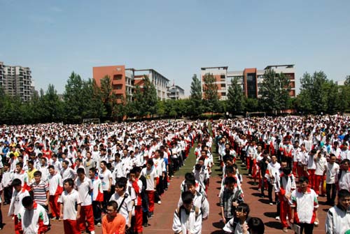 中午13:50,全校午休结束,全体学生迅速起床,整理内务,作好紧急疏散准备,全体工作人员全部到位,严阵以待;14:00,紧急警报拉响,副总指挥发出指令:学生公寓出现紧急情况,请全体师生立即撤离,马上到运动场集合!随后,全校4000多名师生安全、有序、快速按规定线路从学生公寓撤离到运动场,班干部配合班主任及时清点并报告人数。